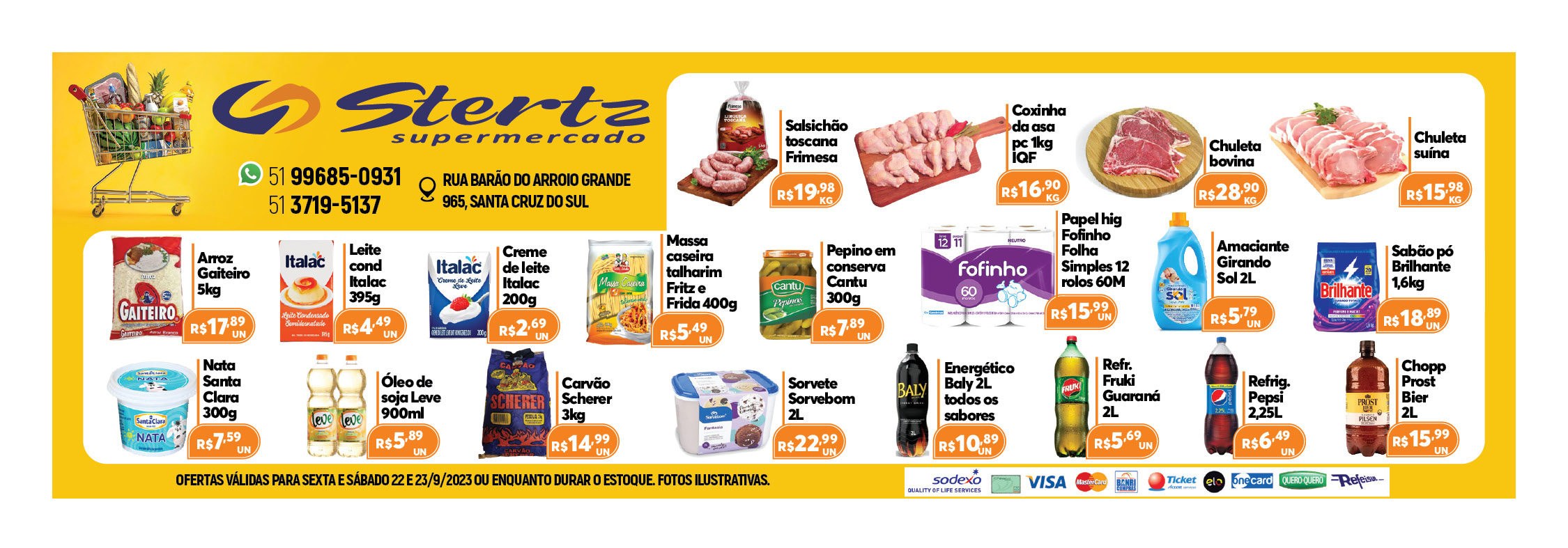 As ofertas de mercados são tradicionais na Gazeta do Sul. Como vitrine e canal de ofertas, a Gazeta oportuniza aos clientes ter em mãos os melhores preços da cidade. E, para enriquecer pesquisas de produtos e resultado ainda melhor a usuários e parceiros, nos anúncios, o leitor tem acesso direto com link ao site do anunciante, onde poderá verificar mais detalhes sobre os itens. Confira: