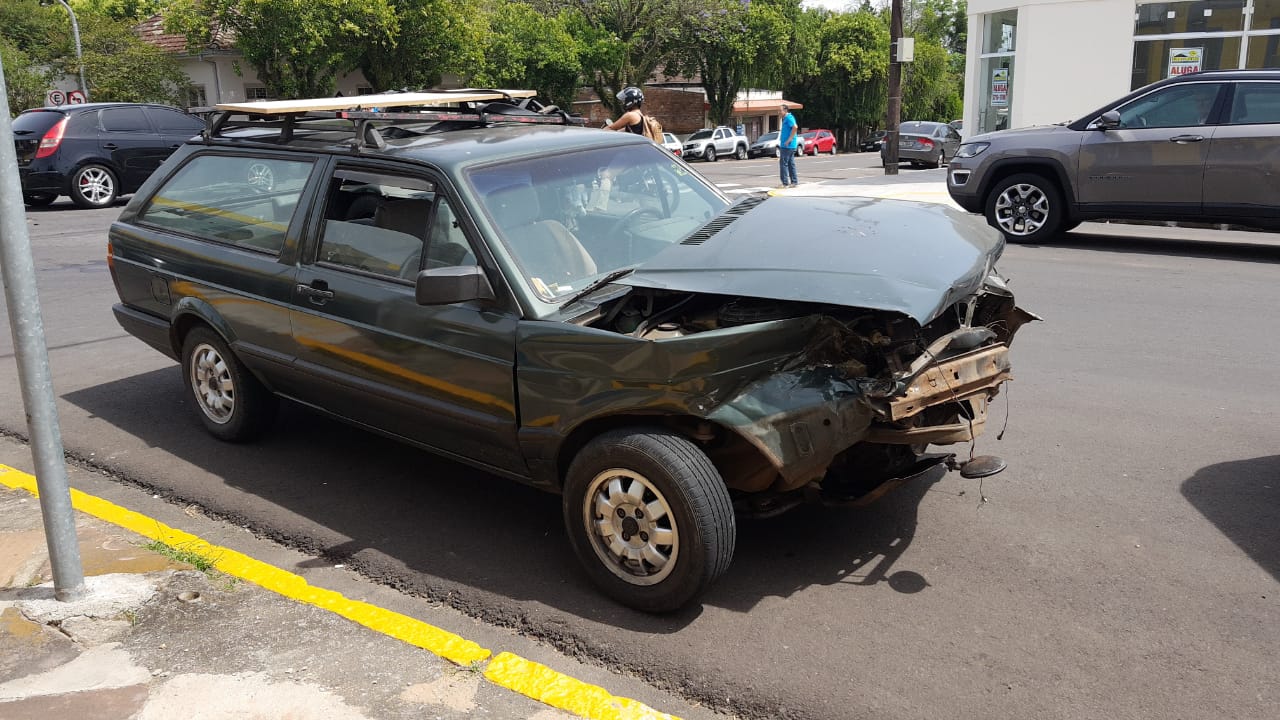 Uma Parati, com placas de Santa Cruz do Sul, e um caminhão betoneira de Estrela colidiram na manhã desta segunda-feira, 12, no Centro de Santa Cruz do Sul. O acidente foi por volta das 11h10, no cruzamento da ruas Fernando Abott e Carlos Trein. O trânsito chegou a ficar lento no local até a remoção dos veículos. Ninguém ficou ferido.