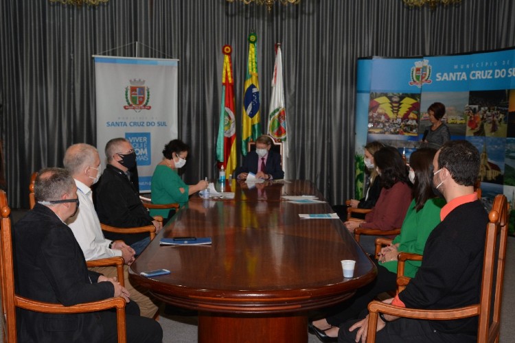 O termo de colaboração entre as instituições foi assinado pelo prefeito Telmo Kirst e pela reitora da Unisc, Carmen Lúcia Helfer na manhã desta quinta-feira, 25, no salão nobre do Palacinho. O ato foi acompanhado também pela secretária Juliana Bach, pelo vice-reitor Rafael Frederico Henn, pelo pró-reitor de extensão e relações comunitárias da Unisc, Ângelo Hoff., pelo professor Rudimar Serpa de Abreu e por servidores da SEE.