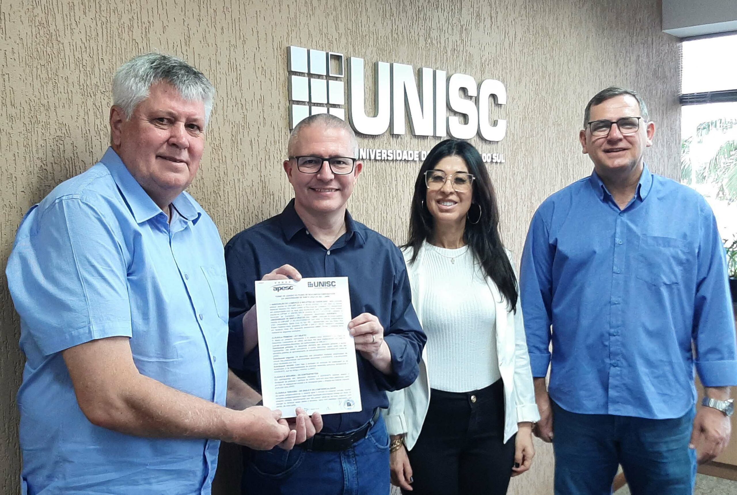A Universidade de Santa Cruz do Sul (Unisc) firmou parceria com a Associação do Comércio e Indústria de Candelária (Acic) para oferecer descontos aos associados da entidade. A assinatura do contrato ocorreu na manhã dessa quarta-feira, 23, entre o reitor da Unisc, Rafael Frederico Henn, e o presidente da Acic, Clairton Kleinert. Os descontos valem para graduação, pós-graduação e cursos de extensão.