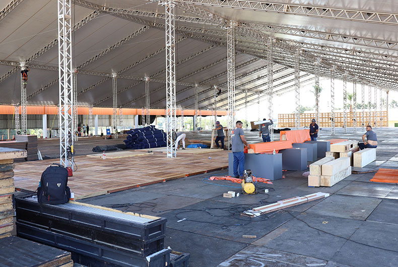A menos de duas semanas da abertura da 21ª Expoagro Afubra, o parque localizado em Rincão Del Rey, no interior de Rio Pardo, começa a ganhar a cara do evento. A montagem das estruturas temporárias e dos estandes começou na semana passada e deve se intensificar a partir da próxima segunda-feira, quando os maquinários e equipamentos que estavam na Expodireto, em Não-Me-Toque, começam a chegar. Prosseguem também as ações de corte de grama, ajardinamento e manutenção das lavouras demonstrativas.