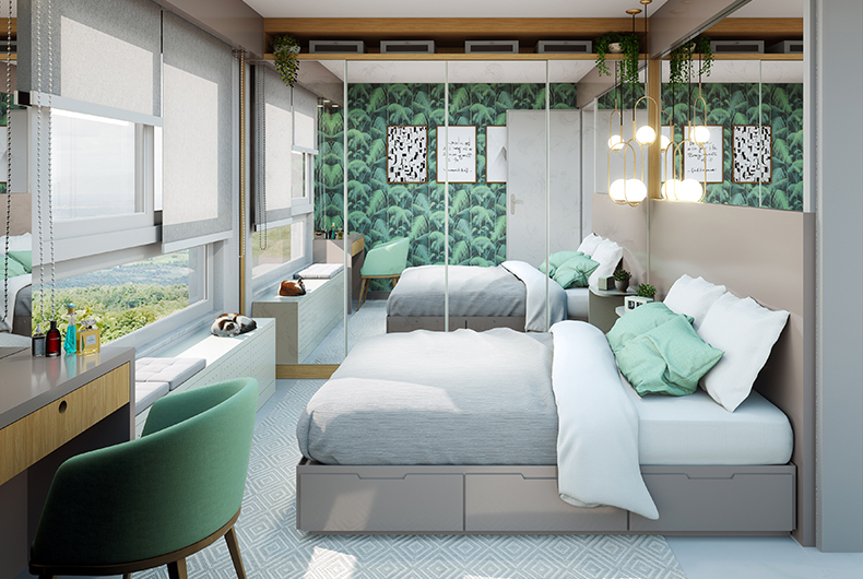 A rotina ideal mudou, e o Condomínio Parque das Nascentes entende que esse é o melhor momento para oferecer as opções mais oportunas, que atendam às necessidades das famílias. Por isso, além de investir em uma infraestrutura completa, o empreendimento aposta nos apartamentos de dois dormitórios, proporcionando espaços amplos e com inúmeras possibilidades de uso. Esse é o sexto propósito do condomínio, conforme explica o empresário e diretor da João Dick Empreendimentos, João Dick. “O segundo dormitório abre infinitas opções de uso. Talvez o ideal seja transformá-lo em um closet, um escritório para home office ou ainda um ateliê de costura. Essa é a proposta: oferecer aos moradores um espaço adequado e confortável, ideal para suas necessidades do cotidiano”, argumenta.