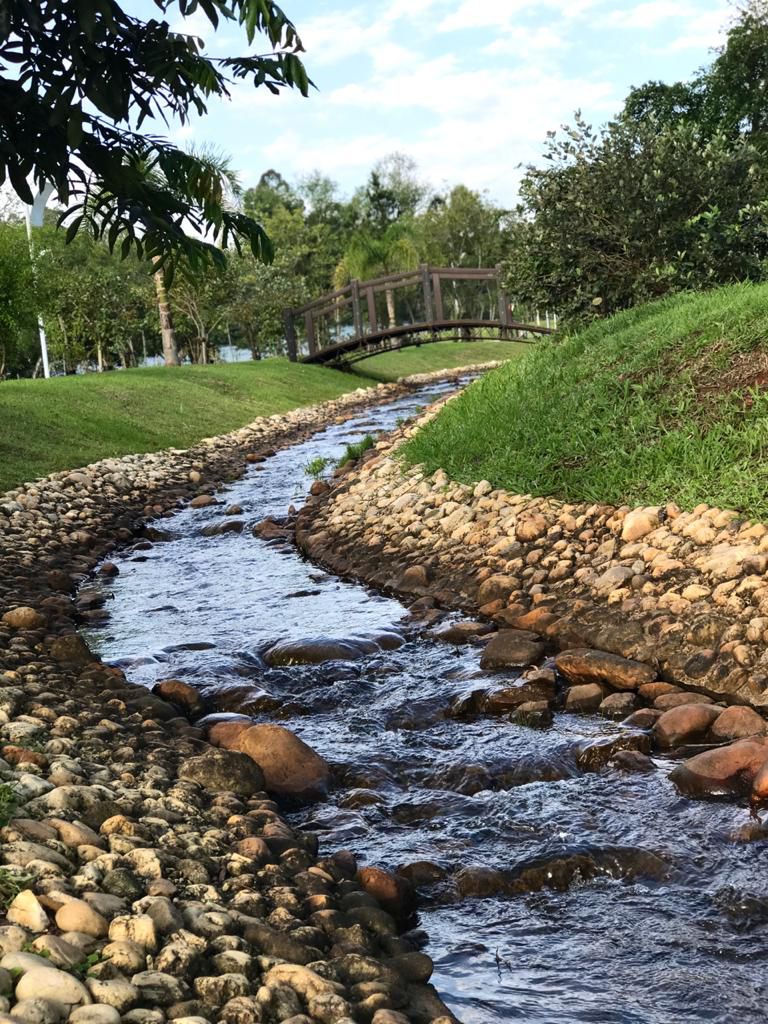 “O Parque é realmente o coração deste empreendimento. Na verdade, nós apenas prestamos uma ajuda à rica natureza que já existia no local”, lembra o empresário João Dick. O riacho, por exemplo, foi organizado para que continuasse natural e intacto, mas com as proteções para as crianças. Já a área arborizada, considerada o pulmão verde, já contava com uma boa quantidade de árvores, mas outras 600 foram plantadas, nativas e preferencialmente de frutas silvestres.