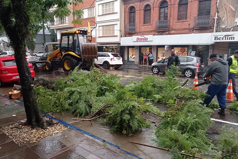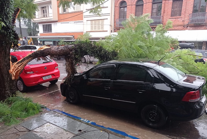 A instabilidade climática percebida nesta quinta-feira, 29, com chuva intensa, já apresenta consequências. Próximo do meio-dia, foi registrado transtorno no Centro de Santa Cruz do Sul. Na Rua Tenente-Coronel Brito, quase esquina com a Rua Júlio de Castilhos, uma árvore rachou e caiu sobre um veículo, também rompendo fios.