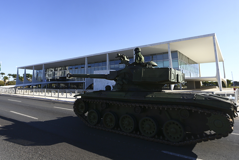 O comboio de veículos militares blindados passou pelos arredores do Congresso Nacional como parte da Operação Formosa, um treinamento militar que, pela primeira vez, tem a participação do Exército e da Força Aérea. Parlamentares veem no ato uma tentativa de intimidação do Congresso, uma vez que acontece no dia da votação da proposta de emenda à Constituição (PEC) do voto impresso pela Câmara.