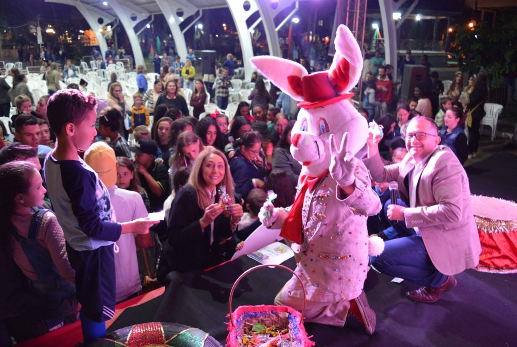 Ao final do espetáculo, ocorreu a chegada do Coelho da Páscoa, que distribuiu doces às crianças.