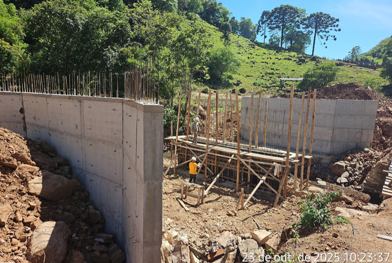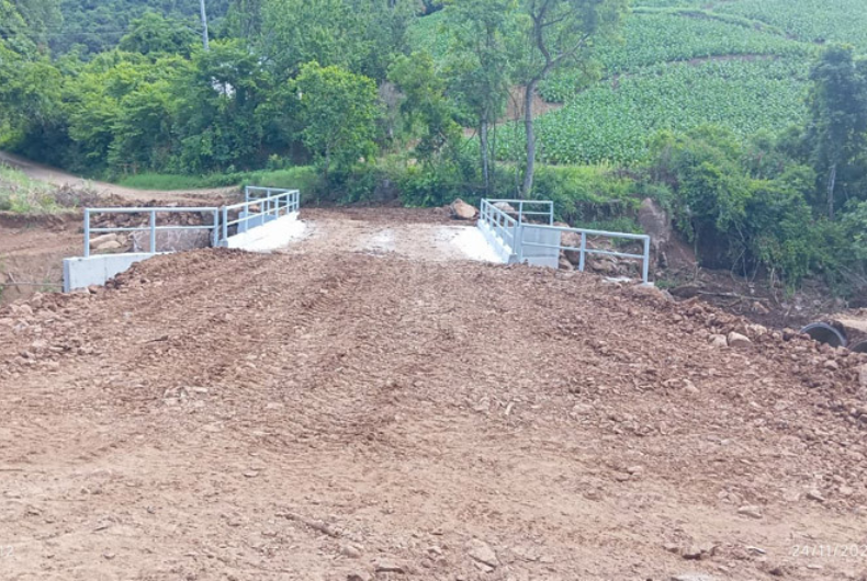 - Além destas, a Ponte da Graxeira, sobre o Arroio Marcondes, em Linha Rio Grande, está em obras e aguarda a colocação da chapa sobre as vigas.