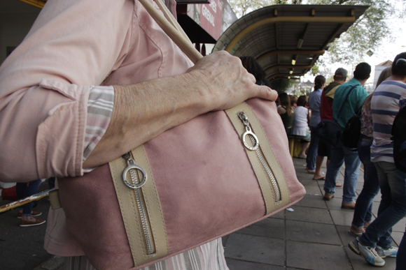 A aposentada chegou na parada às 14h40. Sozinha, ela aguardava o ônibus que a levaria para o bairro onde mora e a grande movimentação chamou sua atenção. “Fazia tempo que eu não via tanta gente ali”. A santa-cruzense conta que quando os coletivos chegaram, todo mundo correu pra embarcar. Ela, cheia de sacolas, fez o mesmo. Neste momento, acredita, alguém conseguiu mexer na sua bolsa e furtar a carteira. “Não percebi nada. Eu fechei minha bolsa, mas talvez tenha ficado uma fresta por onde o ladrão colocou a mão e pegou minhas coisas”, conta. “É alguém profissional. Ninja. A abertura fica bem embaixo do braço. Não é uma daquelas bolsas compridas. E eu não percebi nada”.