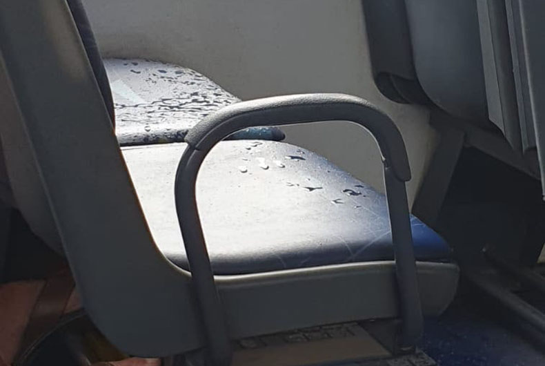 Leitora da Gazeta do Sul e do Portal Gaz mostrou-se indignada com o que chama “desrespeito” vivido pelos passageiros do ônibus que faz a linha 187 (Murtinho/Centro) da empresa TCS. Nessa terça, 23, à tarde, flagrou vazamento do ar-condicionado, fazendo com que os bancos ficassem molhados. “Gostaria que nos fosse explicado como ainda atualmente, com toda essa modernidade que nos assola, é impossível que não haja manutenção e conserto no ar-condicionado do carro que foi colocado para fazer a linha nessa tarde (detalhe que já não é a primeira vez que isso acontece)”, diz.