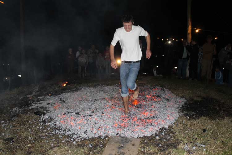 Desde então é sagrado. Faça chuva ou faça sol, todos se encontram em Linha Carijinho no dia 23 de junho. “A passagem pelas brasas é apenas uma das atrações da festa”, afirma o presidente. A comemoração de São João está marcada para começar às 6 horas de domingo, com alvorada festiva. Às 10 horas tem missa sertaneja. Depois do almoço, às 13 horas terá início o baile da terceira idade. Depois, a partir das 18 horas, ocorrerá um show ao ar livre. A fogueira deve ser acesa às 19 horas.