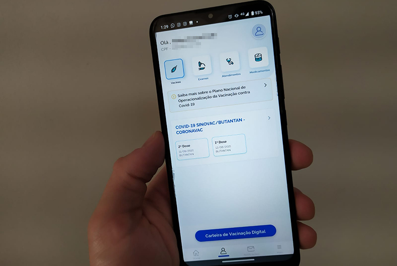 - No site ou no aplicativo, é preciso clicar em “vacinas”, em seguida no boxe onde há informações sobre as doses aplicadas (fabricante, lote, local e data) e, por fim, em “de vacinação” – essa opção só aparece para quem tem o esquema vacinal completo.