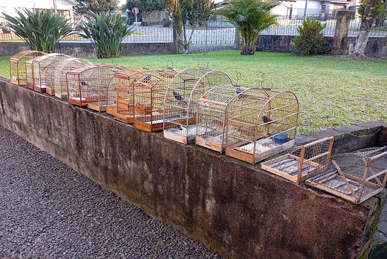 Nesta quinta-feira, 1º, a Guarnição da Polícia Militar Ambiental de Rio Pardo realizou a apreensão de 16 gaiolas e 16 pássaros silvestres em Venâncio Aires. Foram inspecionadas duas residências acerca de denúncias de pássaros silvestres mantidos em cativeiro.