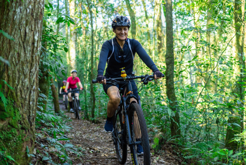 Ciclistas pedalaram em meio ao Cinturão Verde, nas trilhas do Parque da Gruta, ontem à tarde