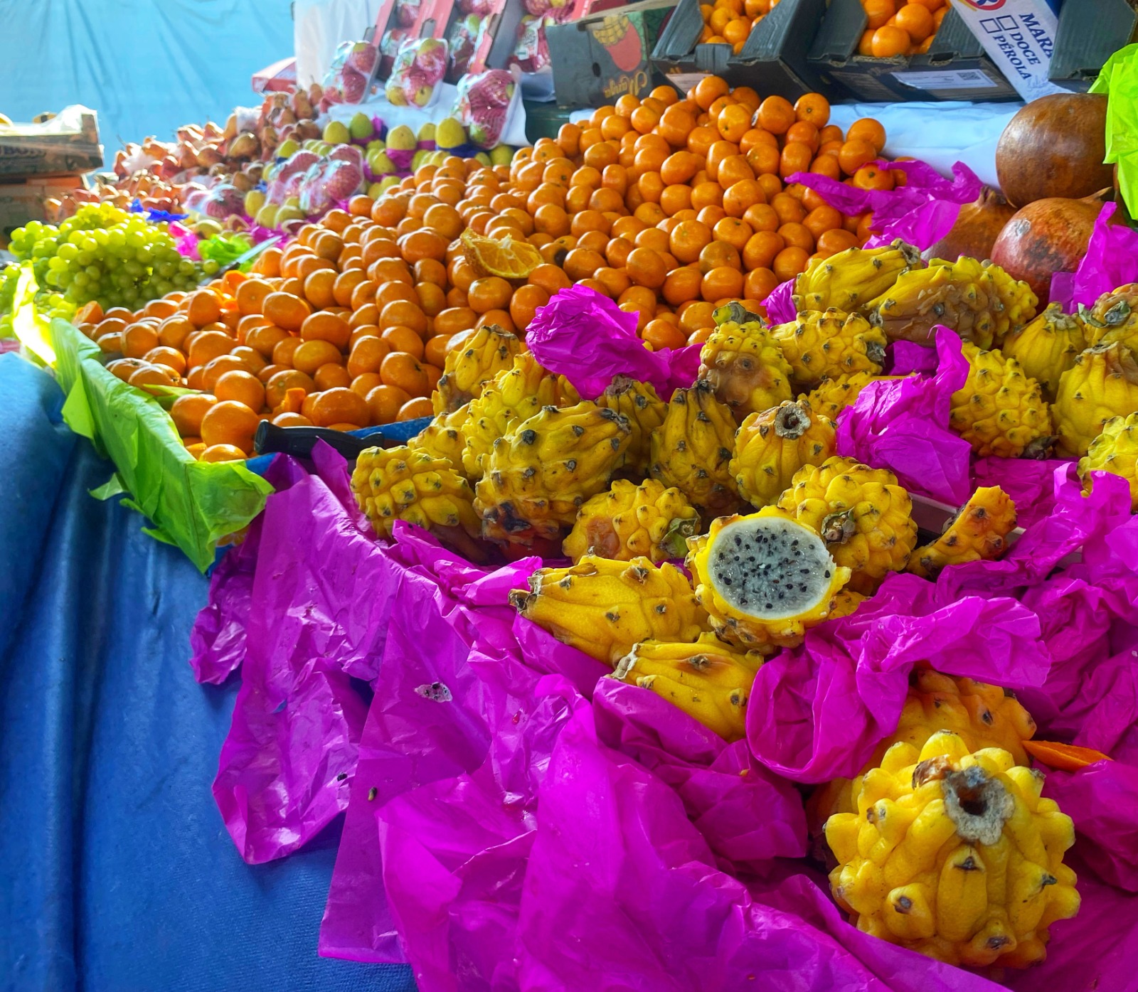 Localizada à esquerda da tenda da agricultura familiar, o Vale das Frutas Exóticas tem mais de 30 tipos de frutas. Quem passar por lá vai encontrar algumas variedades como a Pitaya Colombiana, a Pêra-Nashi, de origem asiática, tâmara de Israel, atemoia, romã, melancia amarela, maracujá da Índia, damasco, mini bergamota, além de opções tradicionais como morango, uva, manga, entre outras. A venda é feita a quilo, e os preços variam de acordo com a fruta escolhida. Direta de São Paulo, a banca teve resultados animadores nos primeiros períodos de Festa da Alegria. “O pessoal gostou bastante e a tendência é só melhorar”, destacou o dono do espaço, Rodrigo da Silva Menezes.