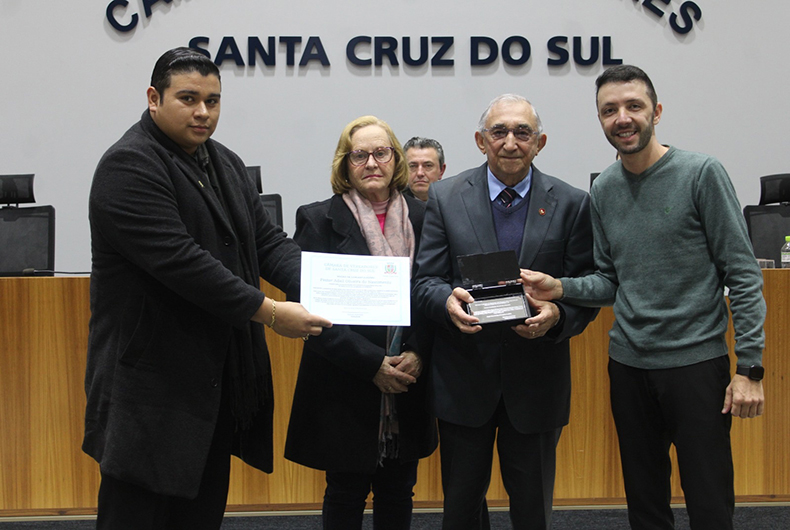 Os pastores Adail Oliveira do Nascimento e Iara do Nascimento, da Igreja Batista Nova Vida, foram homenageados na Câmara de Vereadores na segunda-feira, 15, à noite. O motivo são os 40 anos de atuação à frente da instituição religiosa, reforçados por uma série de ações sociais. O destaque foi feito pelo parlamentar Edson Azeredo (PL), que entregou placa ao casal. O obreiro Thiago Nery os presenteou com um cesto com artigos diversos.