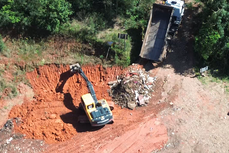 Segundo a ocorrência, foram flagrados equipamentos da Prefeitura retirando rejeitos acumulados em um terreno às margens da ERS-400 e da RSC-287 e levando para a área em Linha Boa Vista, onde o material era enterrado de forma irregular. O descarte inapropriado é considerado crime ambiental. Durante a atividade, foram utilizados uma escavadeira hidráulica e um caminhão caçamba.