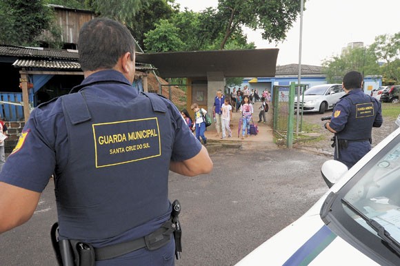Desde o começo do mês, dois guardas, com uma viatura, passam por todas as 26 instituições de ensino municipais, em horário escolar, de segunda até sexta-feira. A iniciativa, de acordo com o secretário de Segurança, Defesa Civil e Esporte, Henrique Hermany, surgiu em uma reunião realizada no último mês, que contou com a presença dos diretores dos colégios municipais e estaduais, Ministério Público e Gabinete de Gestão Integrada Municipal.