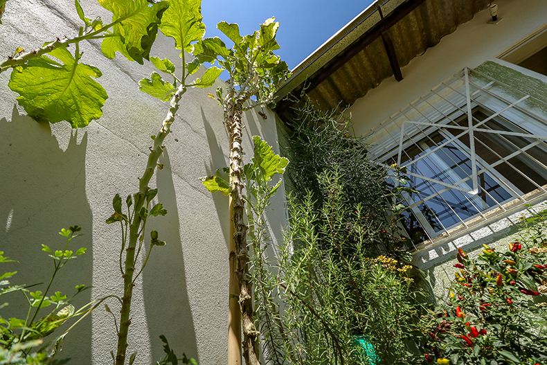 Aposentada há nove anos, Ione gosta de utilizar a couve em diversas receitas. “É muito macia, boa para fazer refogada ou colocar no suco verde.” Ela cuida da mãe, acamada há três anos, e afirma que a jardinagem é uma atividade de lazer. “Nas horas em que ela está dormindo, gosto de mexer na terra. Estou sempre trocando as espécies de plantas e flores, planto sempre a flor de cada época. Gosto de ter alguns temperos também.”