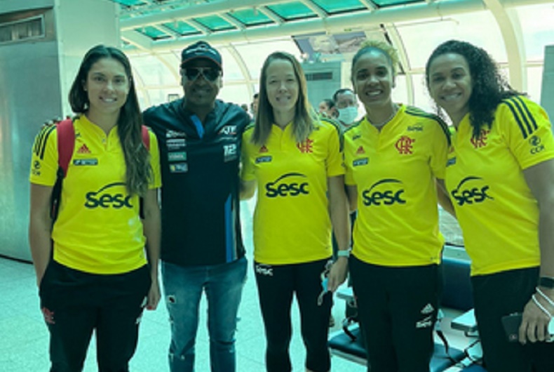 Olá, meus amigos. André Black por aqui com o Pé na Estrada, programa da Rádio Gazeta FM 107,9. Na minha passagem pelo Rio de Janeiro, encontrei atletas de vôlei do Sesc-Flamengo que brilham na Superliga: Bruna Honório, Michelle Pavão, Sabrina Machado e Juciely Silva.