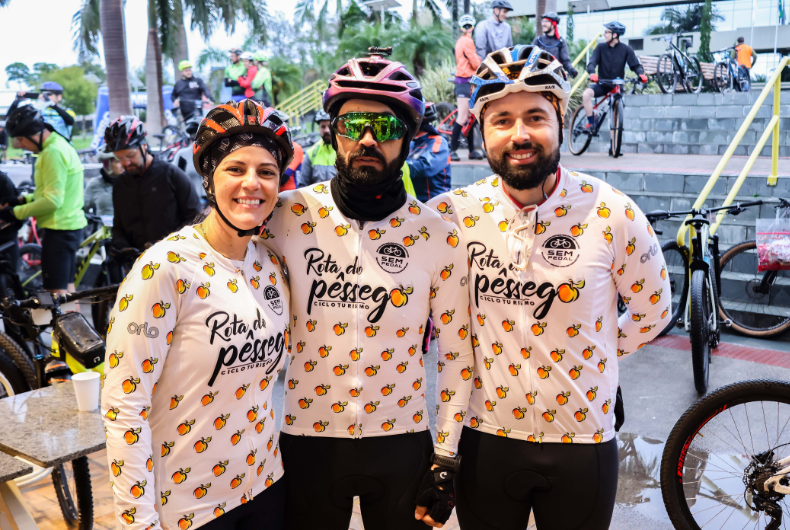 Questionados sobre a expectativa de trilhar o interior de Santa Cruz, os três disseram que torciam pela pausa na chuva e aproveitaram para divulgar a Rota do Pêssego, um dos eventos que costumam organizar. Segundo eles, a última edição teve mais de 600 ciclistas. A trilha é feita em meio aos pessegueiros e os participantes podem colher a fruta no pé.