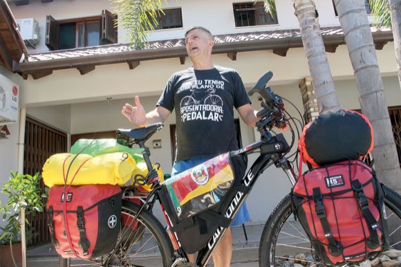 Imerso nas andanças da cicloviagem há quatro anos, o escritor Demétrio Soster era só sorrisos ainda na terça-feira, quando finalizava os detalhes para a partida. Depois de cumprir trajeto até Buenos Aires, na Argentina, em janeiro do ano passado, o também professor da Unisc retornou a Santa Cruz com a certeza de que a próxima viagem seria ainda maior. E assim o fez. Junto com o parceiro que conheceu na jornada batizada de Operação Banda Oriental, Lincoln Paiva, planejou roteiro, caprichou na compra de equipamentos e, como todo bom sonhador, viveu a expectativa de colocar o pé na estrada.