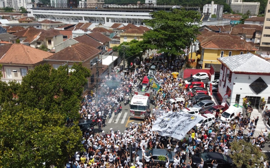 O caixão com o corpo de Pelé saiu do gramado às 10h15 e foi colocado em cima do caminhão dos bombeiros às 10h19. Deixou a Vila Belmiro pelo portão 4, partindo às 10h25 para dar início ao cortejo fúnebre sob aplausos dos fãs.