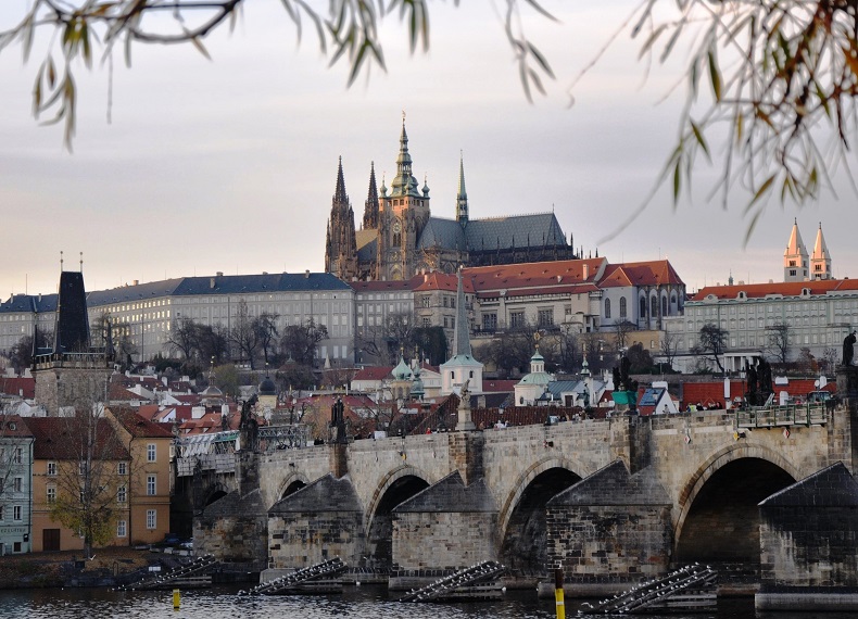 Na mesma margem do rio, o Castelo de Praga é a sede do governo da Boêmia por mais de um milênio (Boêmia e Morávia-Silésia são as regiões que formam a República Tcheca). Os muros do castelo encerram um conjunto arquitetônico e histórico único de palácios, jardins e igrejas. No centro da fortificação, a colossal Catedral de São Vito reina imponente, cuja construção gótica começou há 680 anos e só foi concluída em 1929.