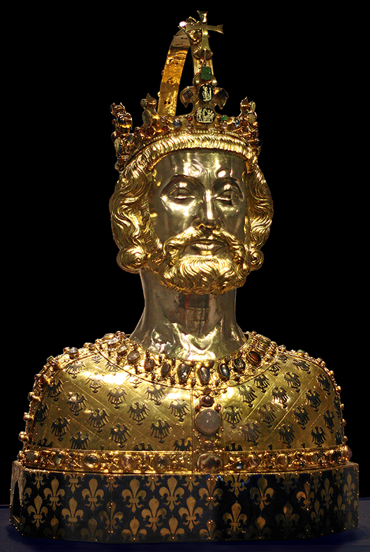 Adjacente à catedral, o Tesouro (Domschatzkammer) contém um busto de prata do rei dos francos (768), rei dos lombardos (774) e imperador do sacro império romano (800). Dentro da obra de arte, a caveira do imperador. O chamado Renascimento Carolíngeo, por outro lado, não foi visto com bons olhos pela Igreja Ortodoxa Oriental, contribuindo para a posterior divisão de Roma e Constantinopla, no Grande Cisma de 1054.