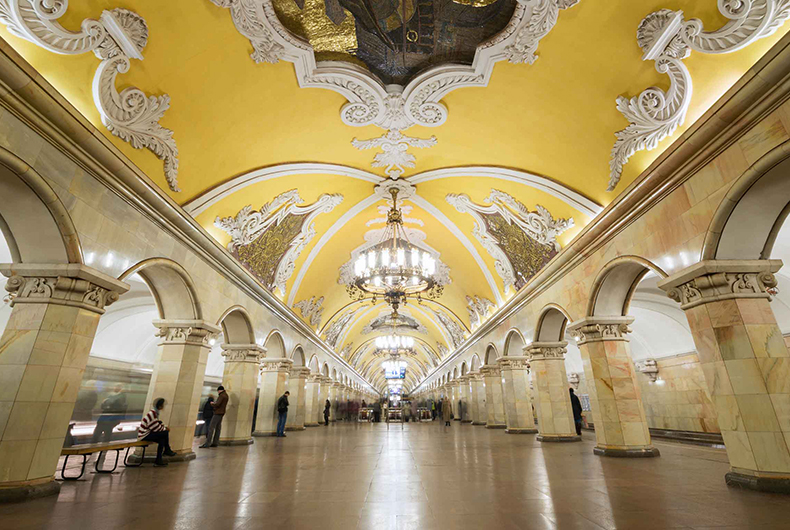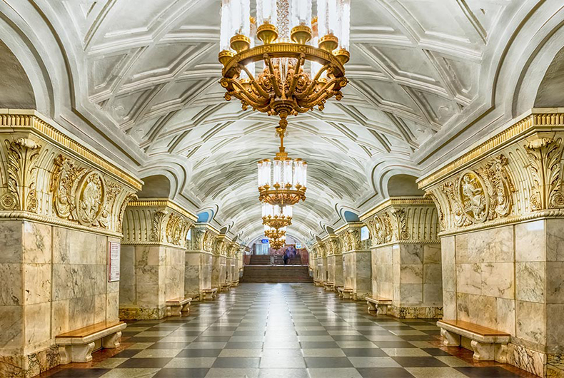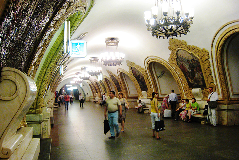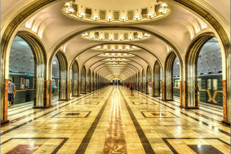 O gosto pela ostentação e pelo gigantismo de russos e soviéticos trouxe alguns benefícios para a população. O sistema de trens subterrâneos de Moscou é o transporte metropolitano mais movimentado, extenso, eficiente e o mais belo no mundo. Suas estações, construídas na maioria durante o período stalinista, são verdadeiros palácios, ricas em obras de arte, mosaicos, candelabros, esculturas, pinturas e, é claro, uma boa dose de propaganda soviética. Materiais nobres, vitrais e muito mármore decoram as naves das 162 estações por onde circulam 9 milhões de passageiros todos os dias. O movimento dos trens subterrâneos de Moscou é maior que o dos metrôs de Nova York e Londres juntos.