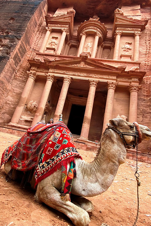 Os paredões de pedra de até 80 metros de altura que formam o desfiladeiro de acesso à cidade vão aos poucos ficando mais estreitos, bloqueando a luz natural. É então que surgem, entre as frestas, as luminosas esculturas rosadas do Tesouro, tumba real de 40 metros de altura construída há 2 mil anos. É o monumento mais famoso da região. Digno de síndrome de Stendhal diante de tamanho esplendor, foi um dos poucos lugares que já visitei que tiraram meu fôlego por alguns segundos.