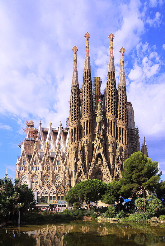 No coração da cidade, tal qual um castelo de areia que emerge em direção ao céu, um templo católico foge de qualquer padrão. O trabalho mais enigmático de Antonio Gaudi começou a ser construído em 1882 e tem conclusão prevista para 2026, ano do centenário da morte do arquiteto. Quando a última das dezoito torres, a Torre de Cristo, for concluída, seus 173 metros tornarão La Sagrada Familia a igreja mais alta do mundo. As formas que imitam a natureza transmitem leveza ao conjunto, apesar das 200 mil toneladas de concreto e pedra usados na construção. Sem ajuda do Vaticano, a obra foi financiada por paroquianos e, nos últimos anos, por milhões de turistas.