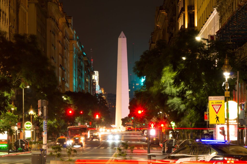 Outro ponto turístico interessante por sua importância cultural é a Avenida Corrientes. Nela se encontra uma grande quantidade de teatros, como o San Martín, e outra grande quantidade de locais de interesse, como o Passeio La Plaza e o Estádio Luna Park. No cruzamento dessa avenida com a Avenida 9 de Julho está o Obelisco, um emblema da cidade, que ainda oferece grande complexo hoteleiro, com hospedagem para todos os tipos de bolsos.