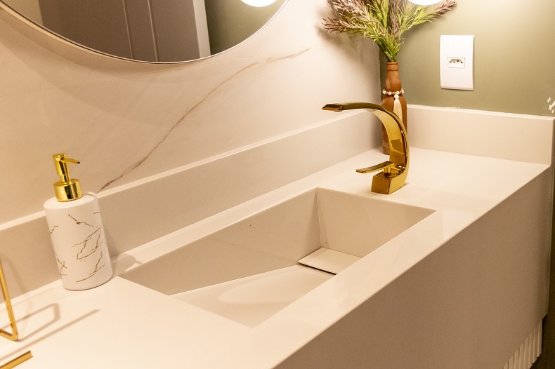 As cubas esculpidas são um sucesso e estão sendo extremamente usadas em projetos de lavabos e banheiros, principalmente. Mas quais são os seus benefícios? Sabrina Arend, sócia da Dilvo Mármores e Granitos, explica que, como são esculpidas, elas não possuem regras de tamanhos pré-definidos. Podem ser feitas do tamanho que o cliente desejar ou de acordo com o espaço, apenas exigem mão de obra especializada para a confecção e instalação.