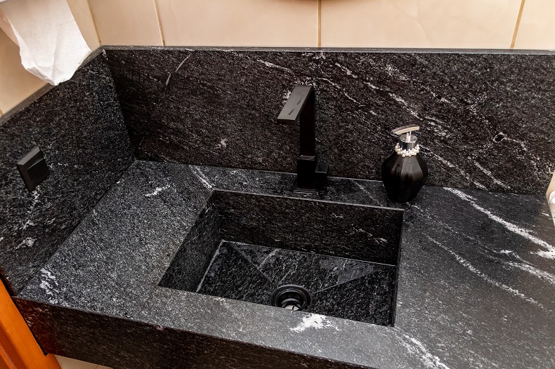 Já o granito, além de ser mais resistente e manchar menos, tem texturas pigmentadas e desenhos fortes para quem gosta de projetos ousados. Por sua vez, as pedras artificiais, caso dos produtos à base de quartzos e resinas, possuem acabamentos mais uniformes, brilho e têm baixíssima absorção. Essas opções artificiais são resistentes e proporcionam uma gama infinita de tons e texturas, que não são encontrados em alternativas naturais.