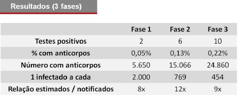 No resultado da rodada anterior de testes, a letalidade era menor: 3,6% levando em conta apenas casos confirmados e de 0,33% quando considerada a estimativa de infectados aponta pela pesquisa.