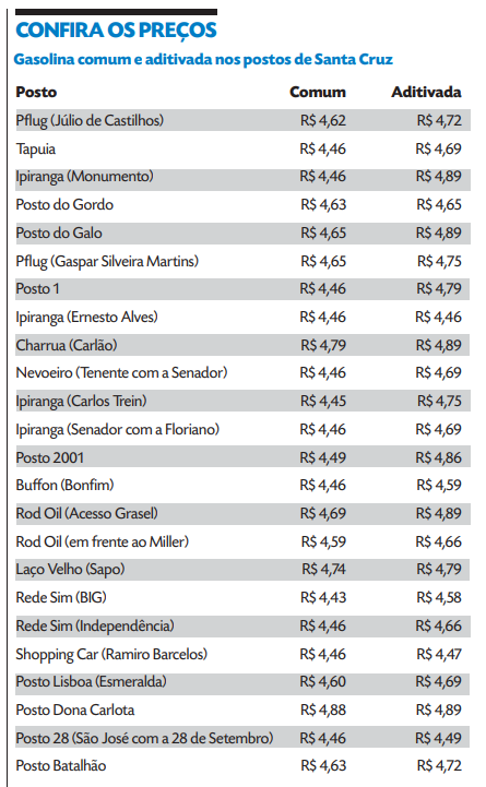 LEIA MAIS: Valor médio da gasolina em Santa Cruz aumenta 10% em um ano