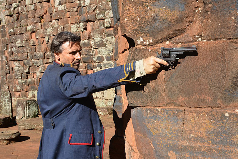 Com o aval do delegado, o instrutor de tiro passou dez dias nas Missões, auxiliando a produção do filme A Cabeça de Gumercindo Saraiva. “Fui para lá cuidar das armas, dar o apoio para criação de efeitos de disparos que seriam necessários e também auxiliar o Murilo Rosa no manuseio do revólver que ele utilizaria”, explicou o agente federal.