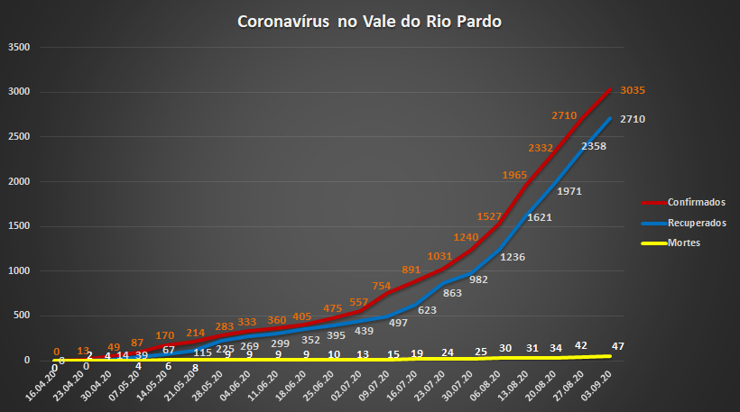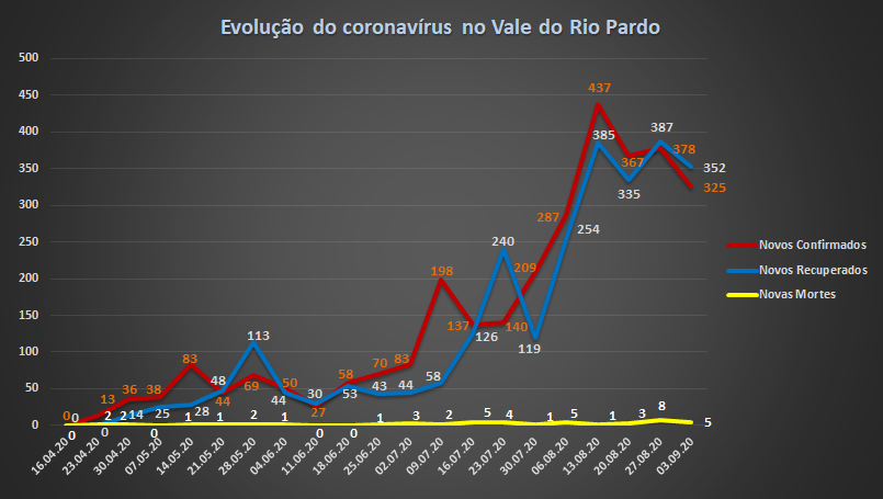 “O Rio Grande do Sul teve o pico da doença na segunda semana de julho, então há cerca de seis semanas. O que acontece é que, com a interiorização da doença em um momento um pouco mais tardio, a gente tem um distanciamento do pico comparando com o Estado. Mas, a gente já consegue perceber isso [a passagem do pico] também na região do Vale do Rio Pardo”, ressaltou.