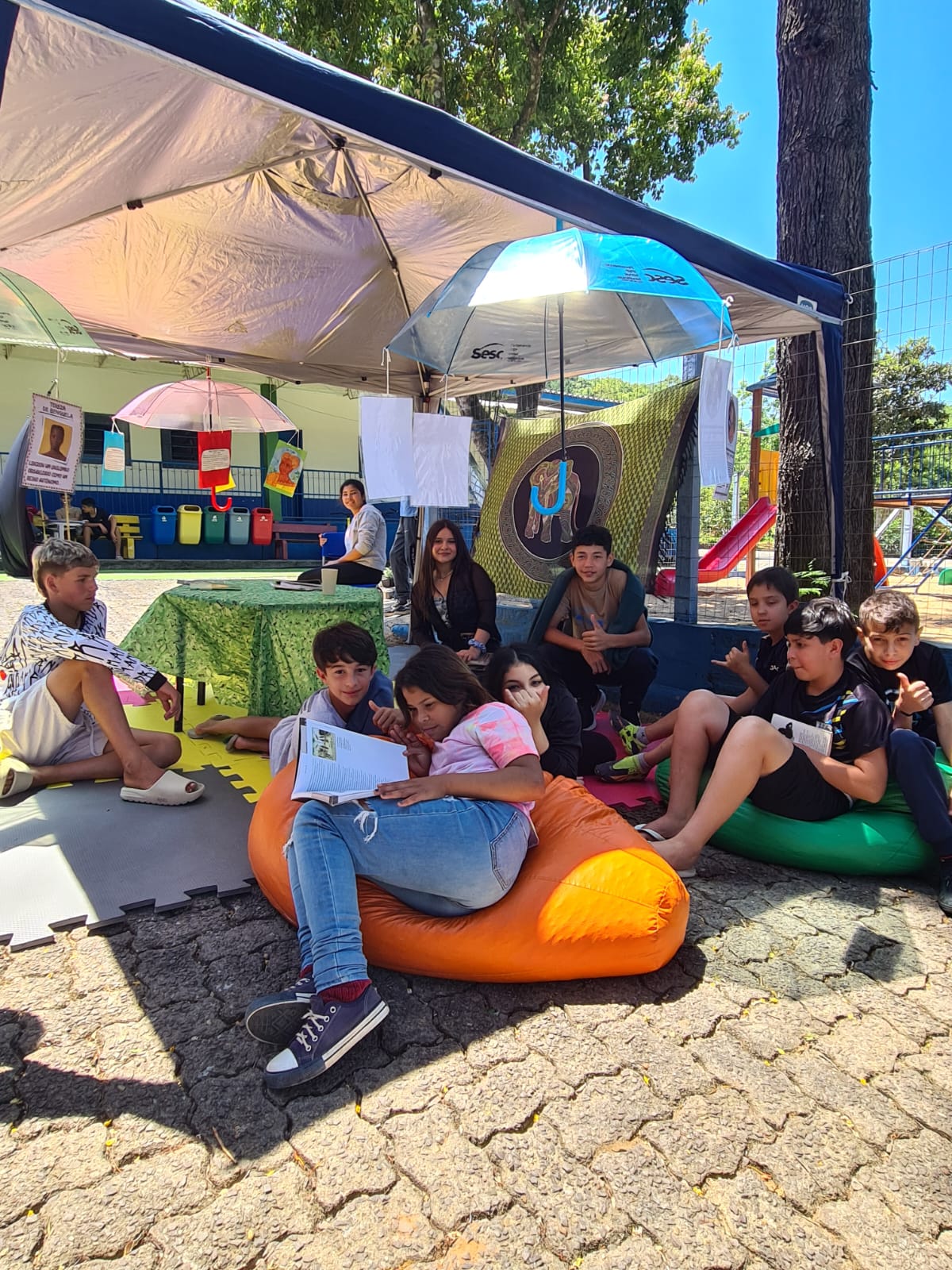 O Piquenique Literário é uma atividade realizada em um ambiente descontraído, ou seja, um cenário ao ar livre. O pátio da escola está todo decorado com a temática do evento que busca abordar as questões étnico-raciais. O estudo passou por todas as turmas que desenvolveram ao longo do ano trabalhos que estão expostos.