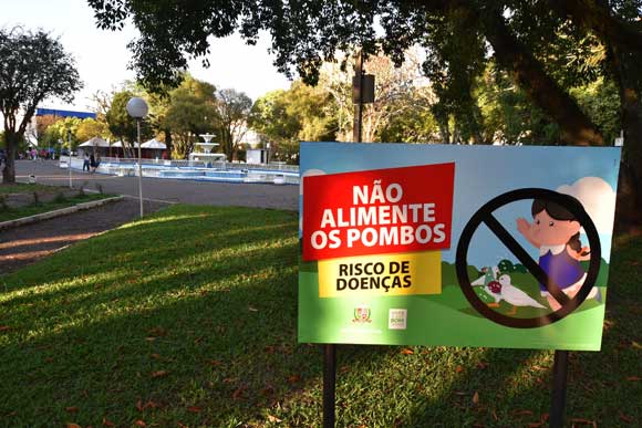 De olho na proliferação de pombos em Santa Cruz do Sul e no risco que isso representa à saúde humana e à natureza, a Prefeitura investiu em placas orientando as pessoas para que não alimentem os animais. As placas estão na Praça Getúlio Vargas, onde as aves vêm aparecendo em busca de restos de comida, farelos e até ração.