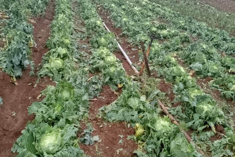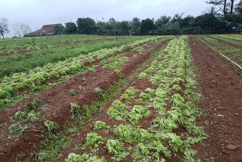 Plantações de hortaliças ficaram devastadas em decorrência do temporal