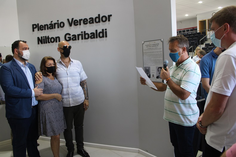 Em uma breve solenidade pouco antes da sessão ordinária dessa segunda-feira, 20, foi oficializado o batismo do plenário da Câmara de Santa Cruz em homenagem ao advogado e ex-vereador Nilton Garibaldi. Ele morreu em abril aos 72 anos, vítima da Covid-19.