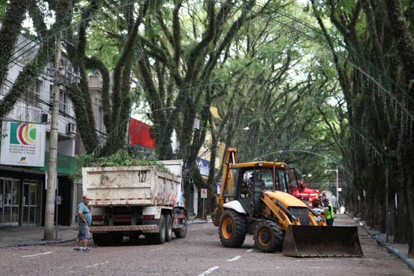 Quem pensou em transitar pelo Túnel Verde, no Centro de Santa Cruz, na manhã desse domingo, precisou mudar de rota. Desde às 6 horas, RGE e Prefeitura realizaram a poda das tipuanas e manutenção da área. O trabalho ocorreu nas quadras entre as ruas Senador Pinheiro Machado e Ramiro Barcelos.