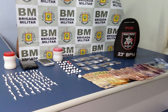 O Pelotão de Operações Especiais (POE) da Brigada Militar prendeu um homem em flagrante por tráfico de drogas na madrugada deste sábado. Durante um patrulhamento, a guarnição identificou um homem saindo de um ponto de venda de entorpecentes. Após revista pessoal, foram localizados três tipos de drogas com ele.