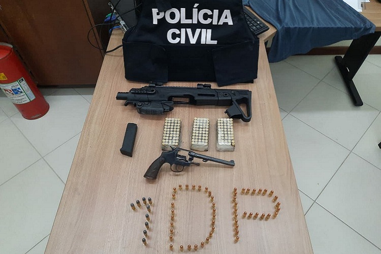Em uma operação deflagrada pela Polícia Civil na manhã desta sexta-feira, 26, agentes da 1ª Delegacia de Polícia (1ª DP) apreenderam um revólver Smith & Wesson calibre 32; 150 munições de calibre 32, embaladas em três pacotes fechados; 52 munições de calibre 9 milímetros; e nove de calibre 38; além de um carregador de pistola Glock 9 milímetros e o chamado kit Roni – capaz de transformar uma pistola Glock em uma submetralhadora, que faz com que a arma dispare rajadas em vez de uma bala de cada vez.