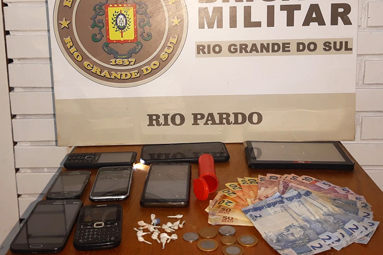 Um dos suspeitos, de 50 anos, foi revistado e com ele foi encontrada uma pedra de crack. O outro homem, de 23 anos, foi abordado nas proximidades e tinha um pote com 20 porções da droga. Também foram apreendidos com ele R$ 306,90 em dinheiro, sete aparelhos celulares, um GPS, uma balança, três nebulizadores e uma carteira.