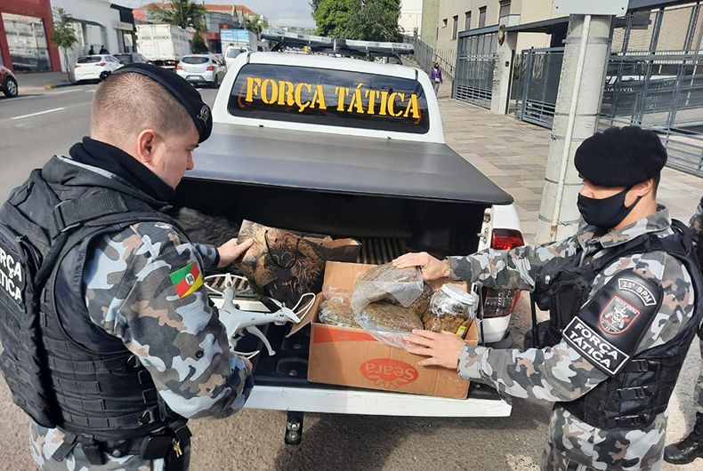 Os policiais da Força Tática apreenderam cerca de 6 quilos de maconha, sete pedras de ecstasy e 78,9 gramas de metanfetamina. Parte da maconha apreendida é do tipo “camarão”, considerada mais pura e de valor maior no mercado ilegal. Havia pacotes desta droga embalada à vácuo, de alta qualidade, de acordo com a polícia.