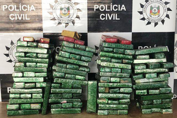 A Polícia Civil, através da 3ª Delegacia de Novo Hamburgo, apreendeu, nesta sexta-feira, 8, 105 quilos de maconha em uma residência em Novo Hamburgo. A ação, coordenada pelo Delegado Alexandre Quintão, ocorreu em continuidade à prisão em flagrante de um homem, realizada na quinta-feira. O indivíduo dirigia um veículo roubado no Bairro Petrópolis, em Porto Alegre, no dia 29 de setembro de 2017. O automóvel possuía placas trocadas e numeração de chassi e motor adulterados.