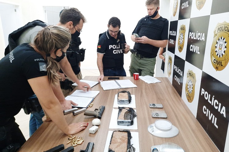 A Polícia Civil de Santa Cruz do Sul realizou uma apreensão inédita no município na manhã desta sexta-feira, 19. A operação foi realizada pela Delegacia de Polícia de Repressão às Ações Criminosas Organizadas (Draco) na Rua Amazonas, Bairro Bom Jesus, onde foram apreendidas armas e drogas, além de cadernos com anotações relacionadas ao tráfico. Um jovem de 18 anos, ligado à facção Os Manos, foi preso.