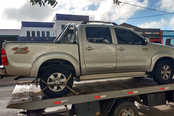 Em uma casa do Residencial Terra Nova, na Rua da Pedreira, foi localizada picape furtada com as placas adulteradas. O suspeito do crime não estava na residência no momento da ação e não foi encontrado.